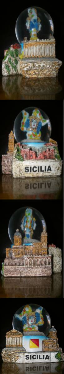 Molti di voi son già stati in vacanza, qualcuno, beato lui, lo è in questo momento e qualcun altro andrà fra qualche giorno a gordersi le meritate ferie estive. Questo articolo è dedicato a tutti voi e tratta di una sfera acquista in Sicilia nella quale sono stati inseriti diversi monumenti di alcune città dell'isola, tra cui Agrigento e Catania. Qualche foto di Agrigento è disponibile nella sezione foto di snowglobemania.