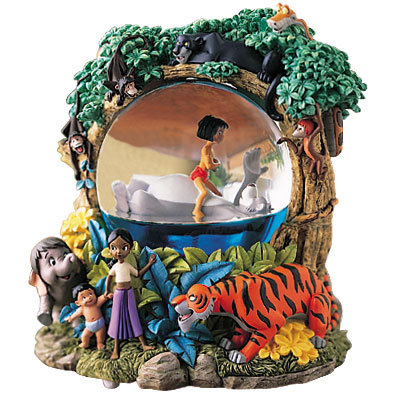 incendiato e glielo legò alla coda. La tigre corse via e nessuno la rivide mai più. Orgoglioso per quanto aveva fatto, Mowgli passeggiava nella jungla con Bagheera e Baloo, quando udì un suono melodioso: una fanciulla del villaggio cantava una dolce canzone. Incuriosito, il ragazzo si avvicinò. "Torna, indietro," gli gridò Baloo. Ma Mowgli non aveva mai visto prima qualcuno del villaggio degli uomini! Affascinato dalla fanciulla, la seguì. Baloo e Bagheera salutarono per l'ultima volta il loro amico. Erano molto tristi, ma sapevano che aveva fatto la scelta più giusta. Il cucciolo d'uomo aveva finalmente trovato la sua vera casa. Una storia insolita, ma che colpisce ancora oggi i bambini e i genitori. La snowglobe, dà un'idea di ciò che ho