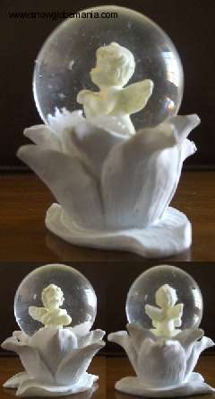 Una piccola palla di vetro con la neve, appena 7 cm di diametro per 9 di altezza, dedicata a un puttino in materiale che vorrebbe imitare la ceramica e, in parte, ci riesce. La sfera è poggiata su una base molto bella, realizzata in pasta da modellare, rappresentante un insieme di foglie. La base non è stata dipinta e questo potrebbe essere molto gradito a chi ama il fai da te perché consente di cimentarsi nel dipingerla con i colori più adatti, ispirati dalla propria fantasia. Noi che di fantasia ne abbiamo poca, la coloreremmo di un marrone nella parte inferiore, di verde scuro nello strato di foglie più esterno e verde chiaro o giallo in quello più interno forse anche perché ispirati dall'autunno appena arrivato. Come potete osservare dal video la tempesta è animata da neve artificiale abbastanza ben fatta e abbondante che forse scende un po' troppo rapidamente, difetto più che perdonabile visto la precisione di dettaglio della miniatura all'interno della sfera e vista l'originalità della base. In definitiva una sfera molto carina, ben realizzata che grazie a una base molto originale si differenzia dalle solite ampolle.