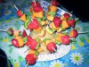 Pulite e tagliate la frutta a pezzetti consistenti. In un pentolino, a fuoco bassissimo, fate sciogliere lo zucchero a cui aggiungerete il succo di limone. Nel frattempo, infilzate la fruttanegli stecchi in modo da formare gli spiedini, che adagerete su un foglio di carta forno, messi uno accanto all’altro. Appena lo zucchero si è caramellato, versatelo sugli spiedini di frutta disposti sulla carta forno. Prendeteli a uno a uno e disponeteli sul piatto da portata. FAcili e Buoni!:)