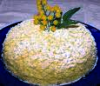 Poni la torta in frigorifero per almeno 3-4 ore prima di servirla. Si può decorare come meglio si preferisce. Noi utilizziamo un rametto di mimosa per renderla ancora più invitante ad occhi e palato:)