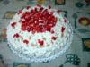 Spalmare il primo disco di panna e cospargerlo con qualche fragola. Coprire con il secondo disco e fare lo stesso procedimento.